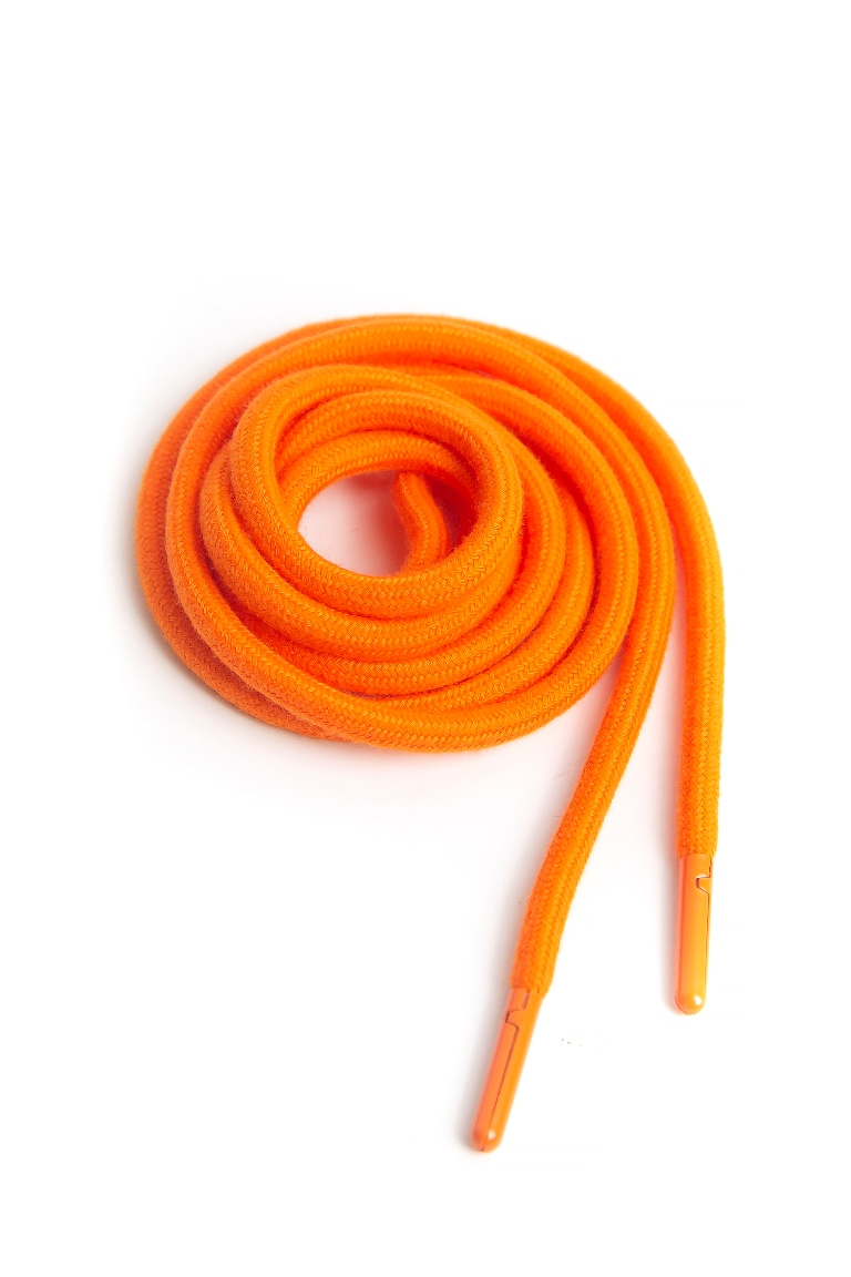 ШНУР КРУГЛЫЙ ПЛЕТЕНЫЙ МАНДАРИН D(0,6)СМ. Х/Б 135 СМ.(НАКОНЕЧНИК В ЦВЕТ) 8010
