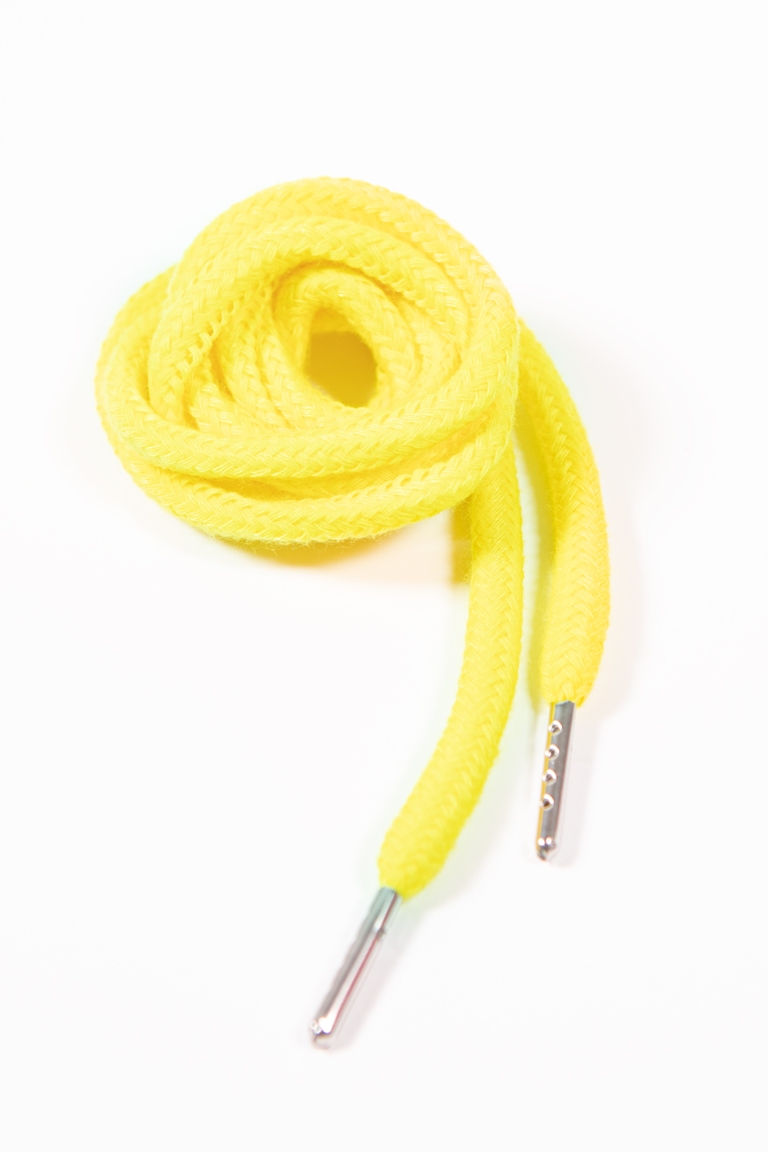 ШНУР КРУГЛЫЙ ПЛЕТЕНЫЙ ЖЕЛТОК D(0,6)СМ. Х/Б 135 СМ.(НАКОНЕЧНИК В ЦВЕТ) 8097