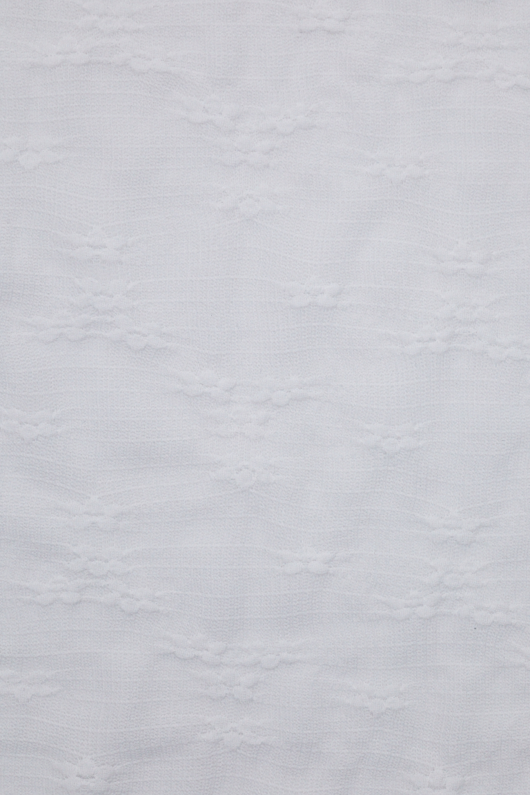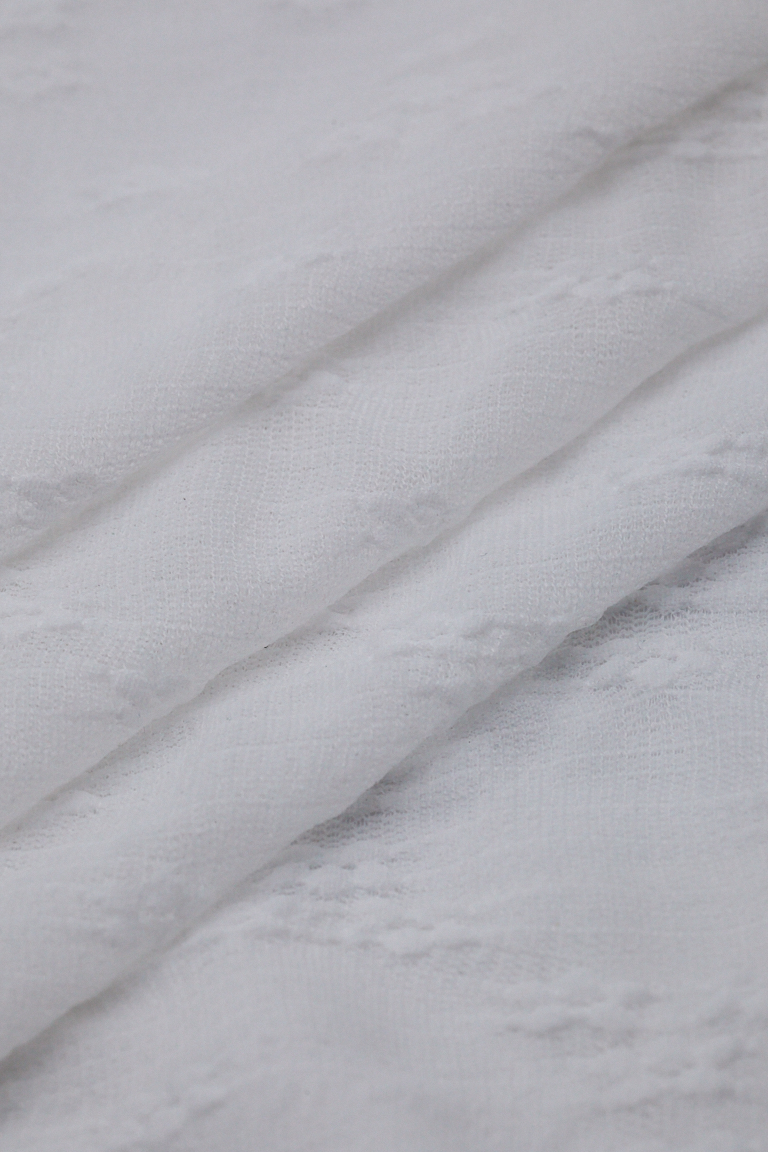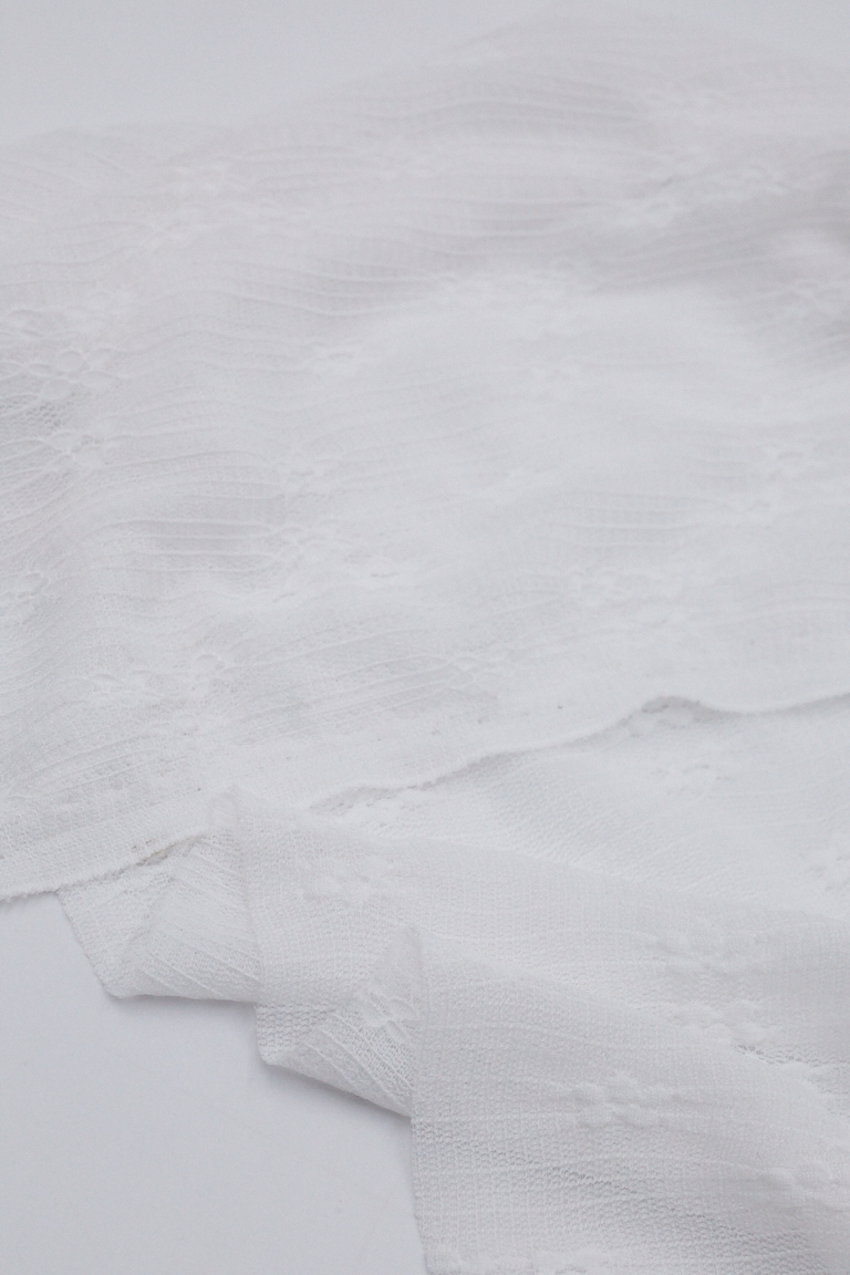 Прозрачный ажурный материал с растительным орнаментом. Поверхность представляет собой кружевные элементы, соединенные сетчатыми "связками". Полотно мягкое, растяжимое во всех направлениях. Гипюр – универсальный материал, который применяется самостоятельно или в сочетании с другими тканями для создания и декора предметов гардероба.