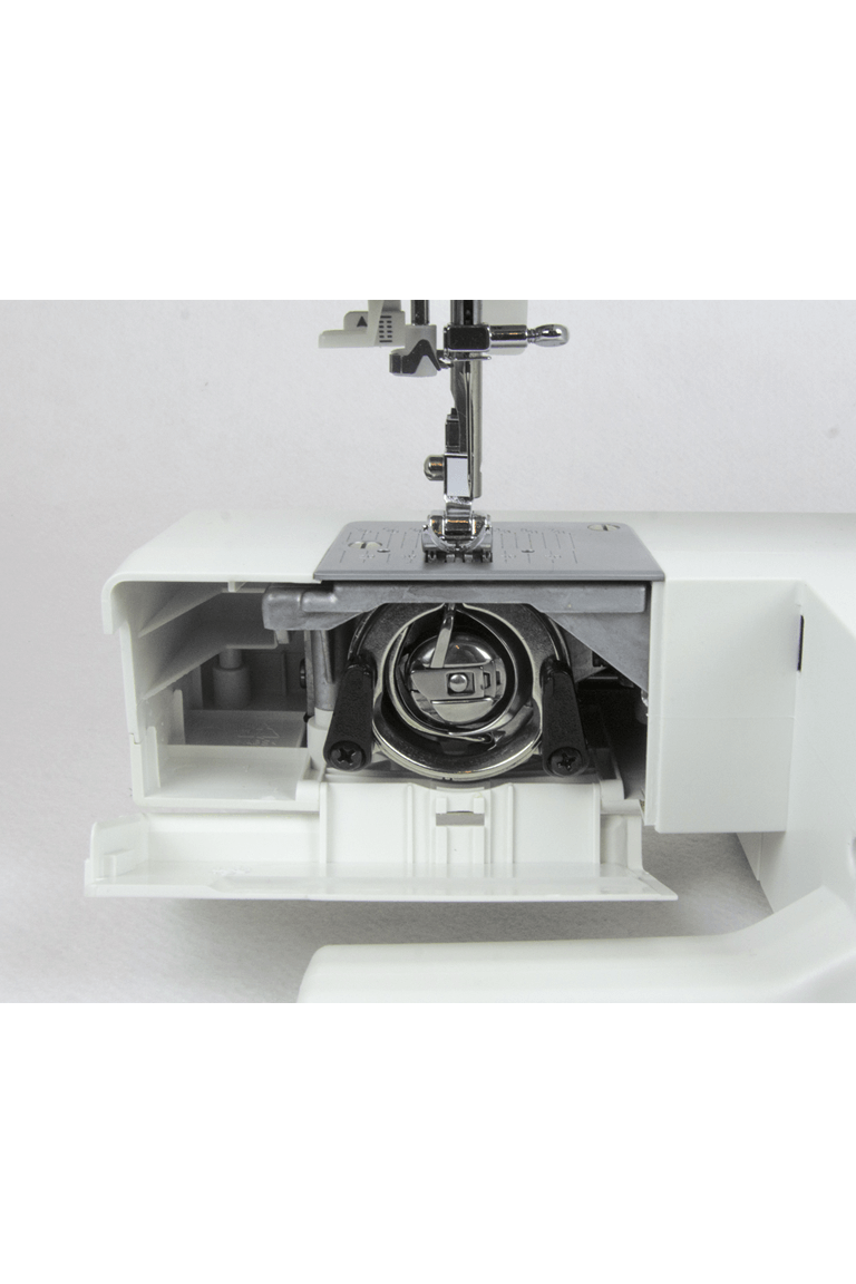 При снятии отсека для хранения принадлежностей открывается рукавная платформа для легкого кругового шитья.