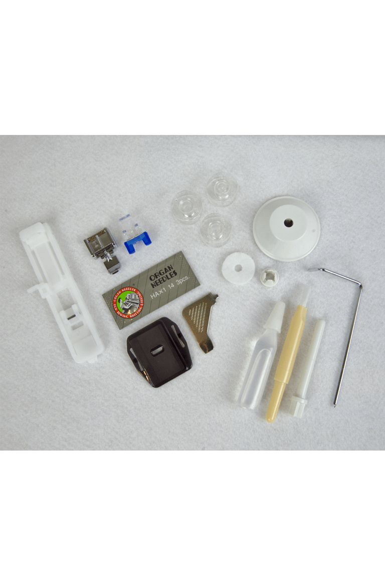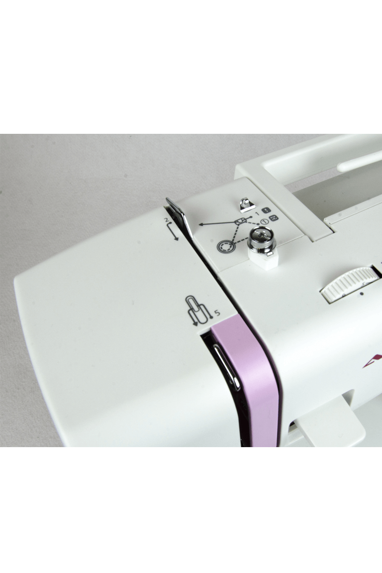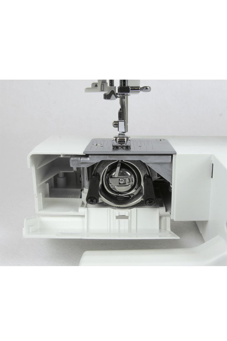 Машина компактна и проста в использовании. Она обладает самыми необходимыми операциями для шитья: рабочие строчки, оверлочные и трикотажные строчки.
