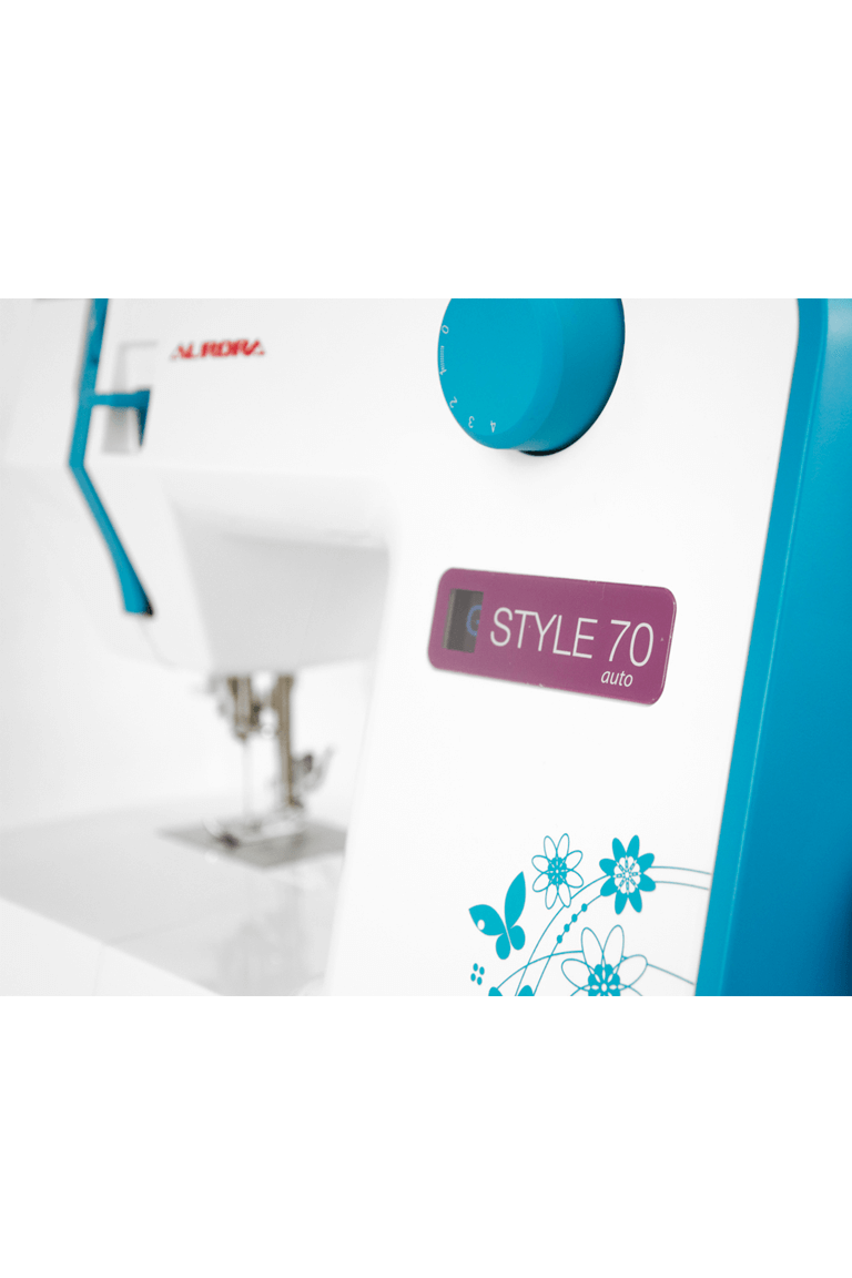 Aurora Style 70 – швейная машина электромеханического типа с оптимальным количеством рабочих строчек, оснащенная вертикальным качающимся челноком.
