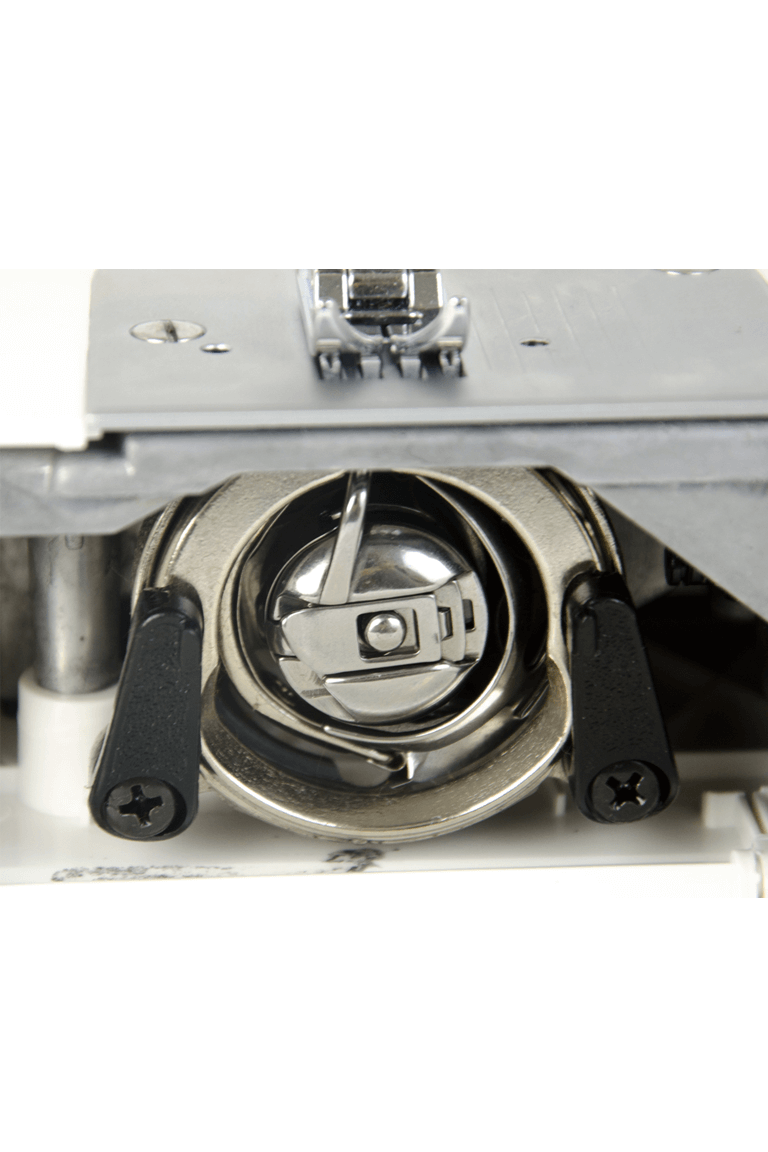 Вы по достоинству оцените тактильные ощущения от управления машиной благодаря специальному покрытию Soft touch на селекторе выбора операций, регуляторе длины стежка и маховом колесе. Катушкодержатели и адаптер для лапки выполнены из металла, а резиновые регулируемые ножки минимизируют вибрацию при работе. В сердце машины классический вертикальный челнок.