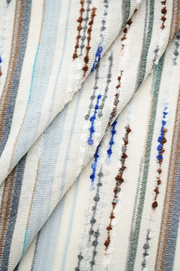 Вязаная полоска с бахромой в идеальных сочетаниях оттенков. Плотность полотна 170 гр/м2. Лицевая сторона гладкая, матовая. Изготовлена путем провязки нитями разных цветов.