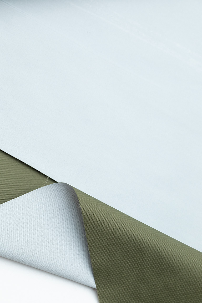 Тонкая курточная ткань с ветрозащитой и влагоотталкивающей пропиткой. Лицевая сторона гладкая, с благородным матовым блеском. Изнанка светлее верха на несколько тонов. Ткань обладает средней формоустойчивостью, почти не драпируется. Может использоваться для пошива облегченных плащей, дождевиков, ветровок, анораков, комбинезонов и курток с подкладкой.