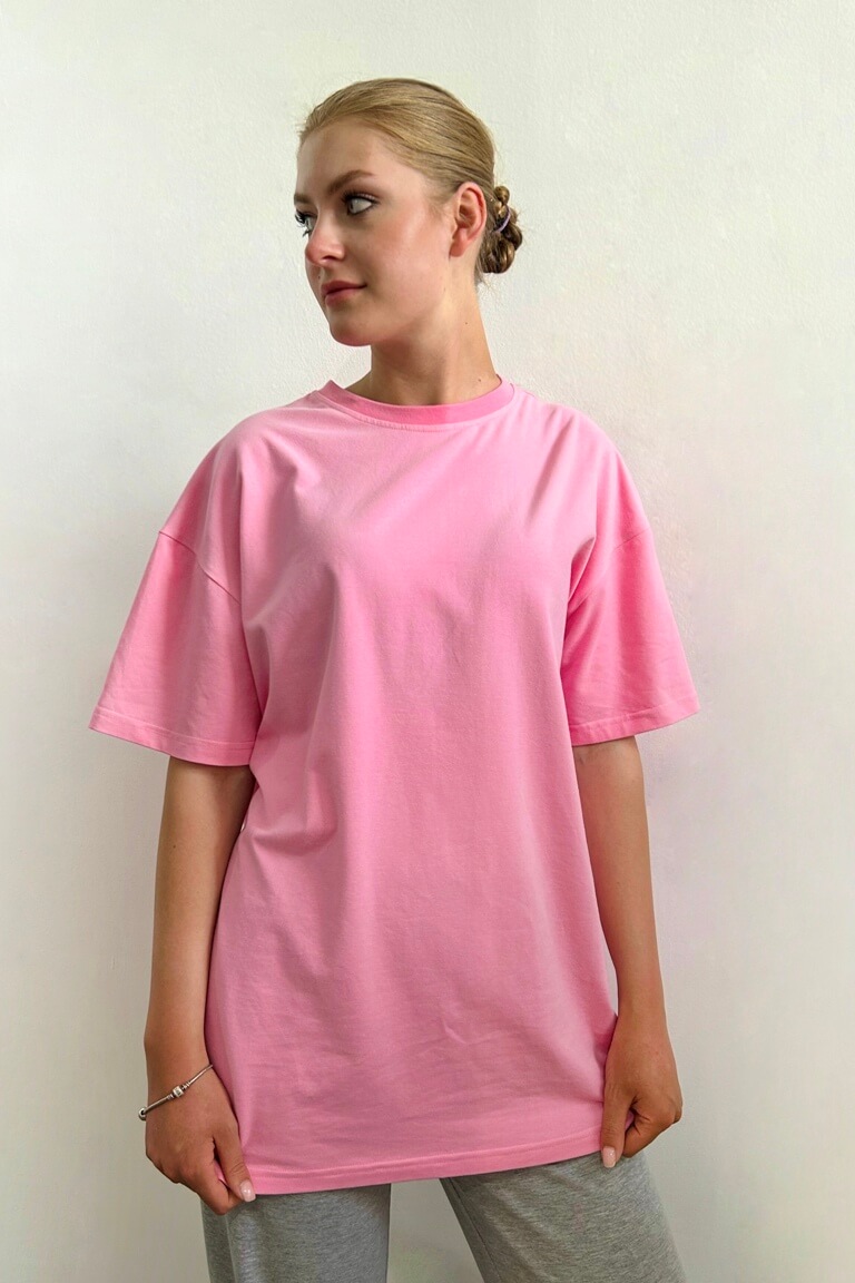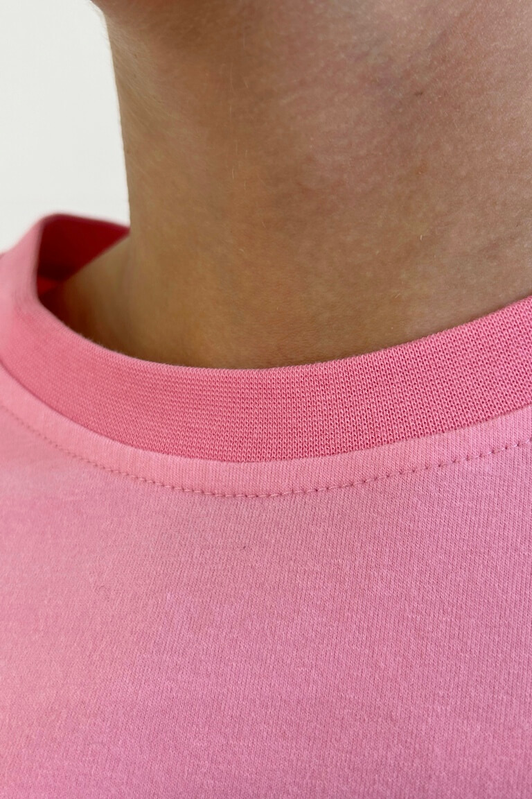 Выкройка футболки. Футболка умеренного объема, прямого силуэта, длиной ниже линии бедер. Рукав вточной, одношовный, длиной до линии локтя. Линия плеча удлинена. Вырез горловины имеет круглую форму, обработан притачной обтачкой из рибаны или тонкого кашкорсе.