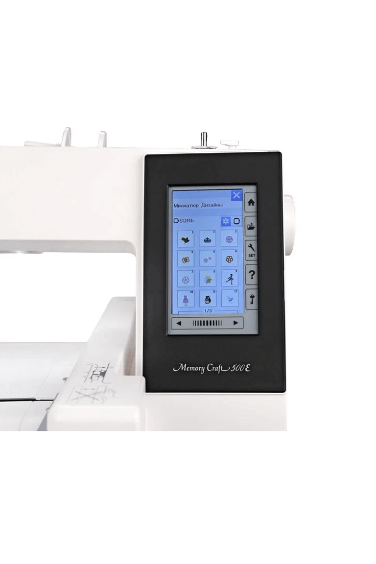 Отличительной особенностью этой модели является наибольшее среди вышивальных машин поле вышивки 280 ? 200 мм. До появления Janome MC500E такой площадью вышивания могли похвастать только дорогие швейно-вышивальные или вышивальные полупромышленные машины. То же касается и максимальной скорости вышивания, которая достигает 860 стежков в минуту.